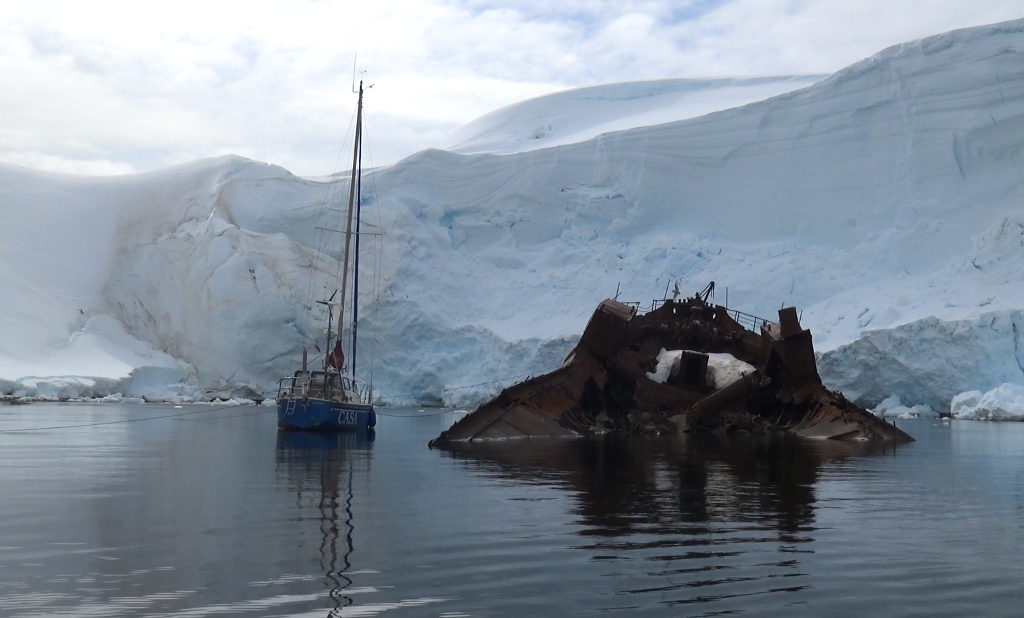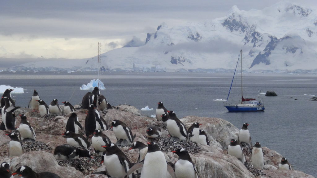 Vor uns liegt jedoch noch eine gefährliche Wegstrecke – die berüchtigte Drake Passage. Melchior Island schien uns als idealder Ankerplatz um ein sicheres Wetterfenster für die Überfahrt zum Kontinent abzuwarten. Ein kleiner Felseinschnitt welcher direkt vor der dortigen argentinischen Station liegt bietet guten Schutz. Doch leider befinden sich dort einige größere Trawler welche wie ein Jojo ständig durch die Bucht ein und austrieben. So hieß es ständig auf der Hut zu sein um diesen Ungetümen mit Leinenmanövern auszuweichen.