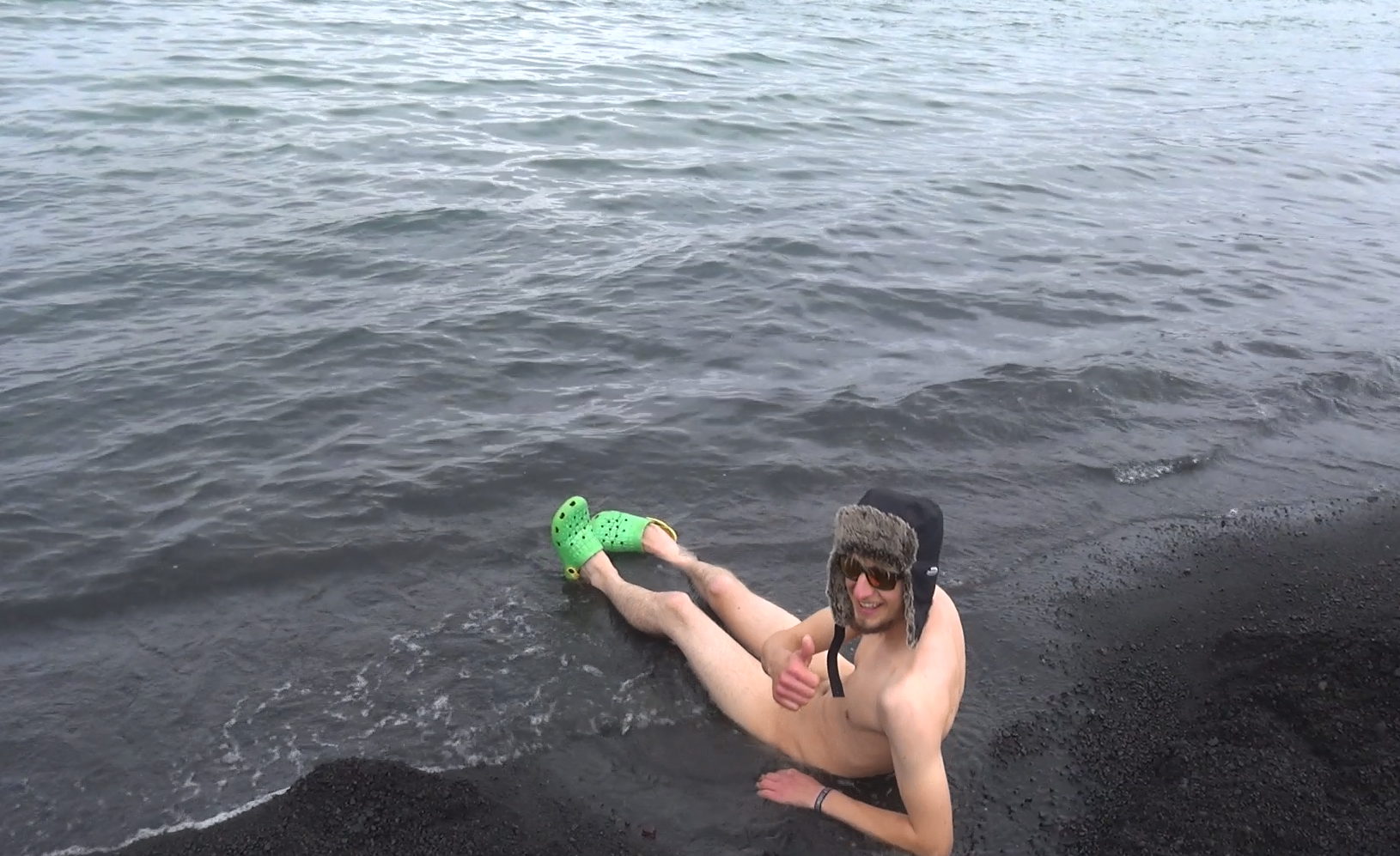 Wir fuhren dazu in die gegenüberliegene Pendulum Cove – doch als wir dort den Finger ins Wasser steckten wurde dieser schell wieder zurückgezogen. Das Wasser war auch hier „arschkalt“. Der Ankerplatz ist eher unsicher – und so musste immer ein Mann an Bord bleiben. Manuel machte sich mit dem Handfunkgerät auf die Suche nach einem Badeplatz – kehrte jedoch nach 2 Stunden wieder enttäuscht zurück. Zwischenzeitlich war aufgrund Ebbe der Wasserstand in der Bucht deutlich gesunken. Am Ufer bildeten sich Rauch/Dampfschwaden – hurrah das warme Wasser war also am Strand knapp unter der Wasseroberfläche zu finden. Mit einem Spaten wurde schnell eine Badewanne gebuddelt und dann ausgiebig gebadet;-)